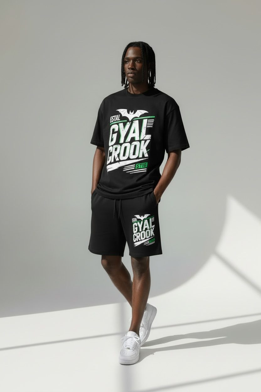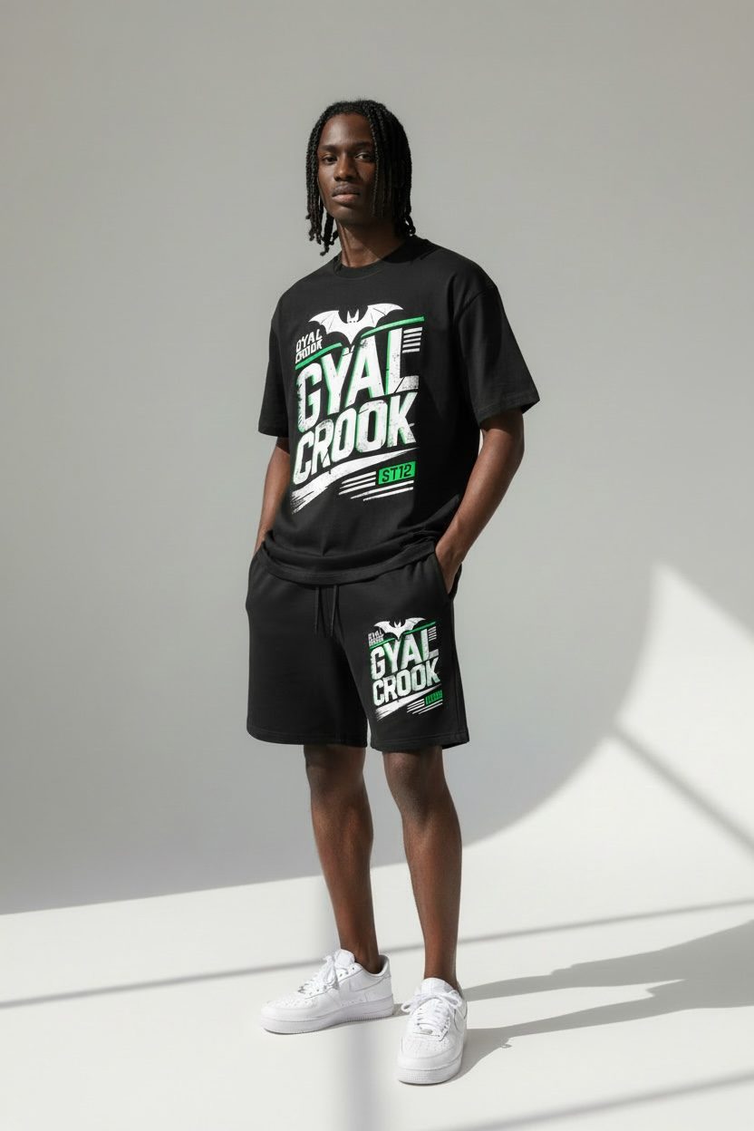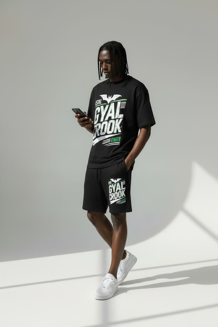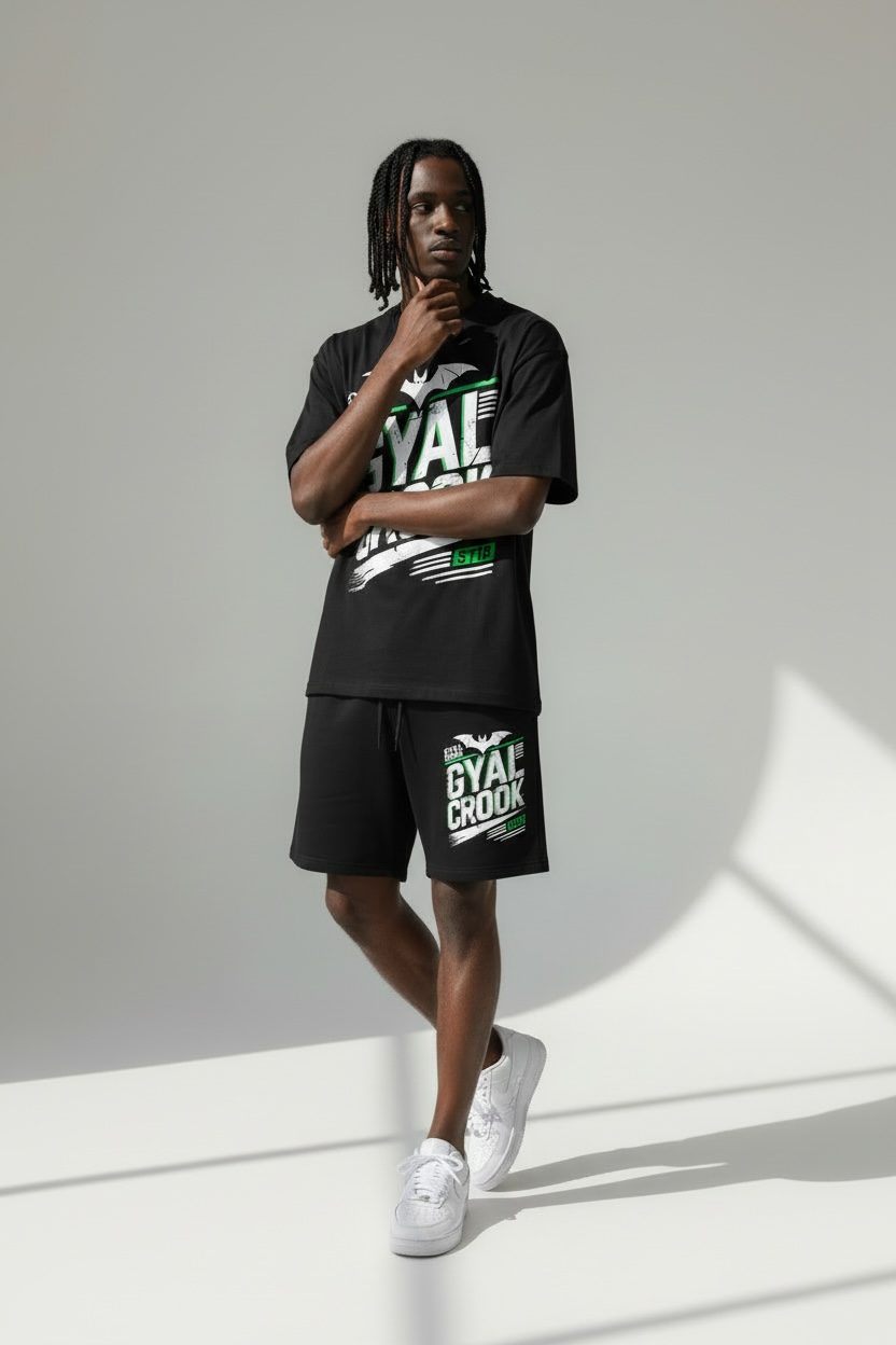 This drop includes premium cotton shorts paired with a heavyweight 300 GSM jet-black tee built for a clean, structured fit. Simple. Bold. Statement-ready.
