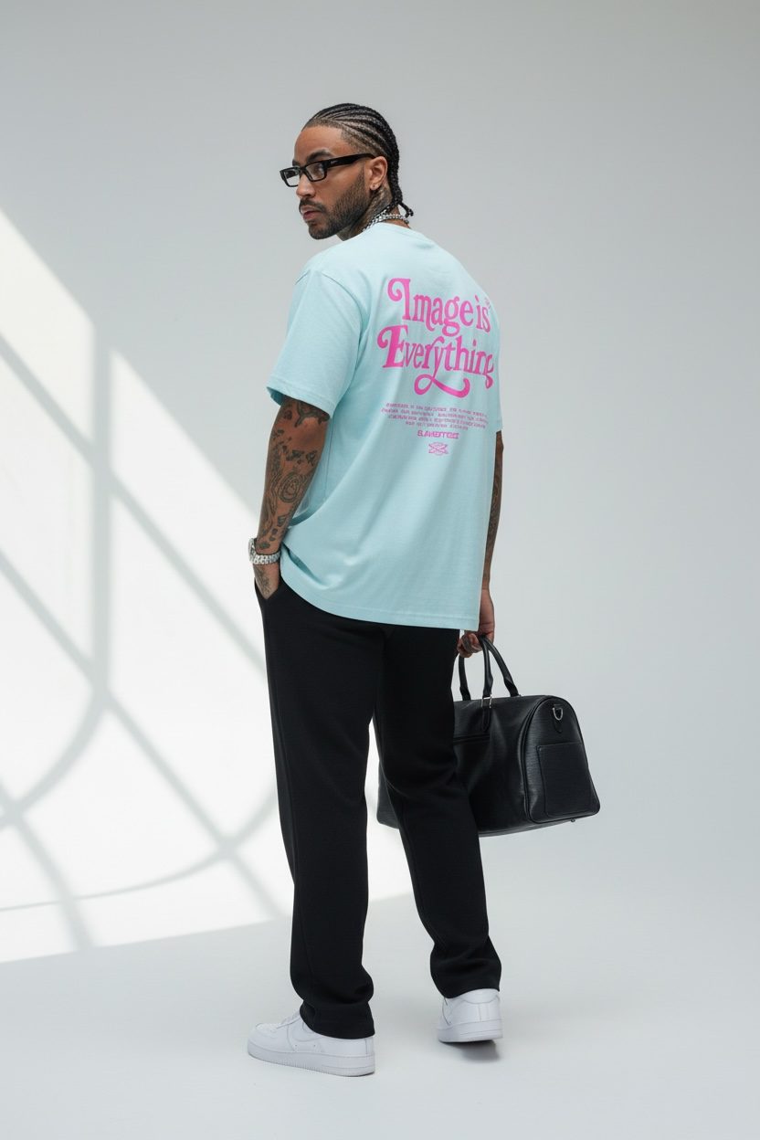 The back graphic, “Image is Everything,” adds a bold yet stylish statement, blending minimal design with expressive branding.
